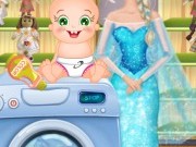 Look at this sweet baby! Her name is Baby Rosy and today we have to help her and Elsa wash a bunch of dirty dolls. First separate the white dolls from the colored ones and make sure you do it before the time runs out. Next put the dolls in the washing machine and add the right detergent. When all the dolls are clean, put them to dry. Baby Rosy will be very glad that you helped her. Have fun!